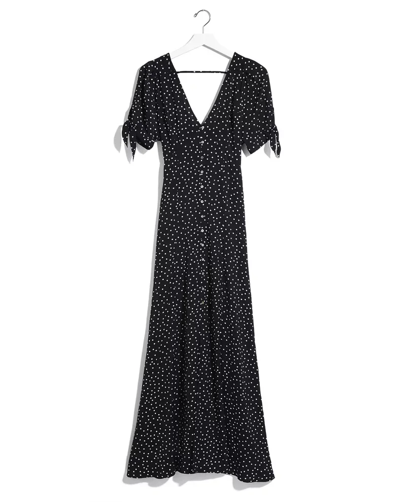 Button Down Tie-Back Sleeve Maxi Dress